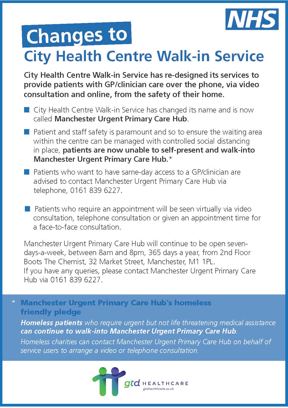 City Health Walk-in Centre offers GP-led healthcare services to registered and non-registered patients who are visiting, living or working in the area. Patients can access the walk-in centre seven-days-a-week between 8am and 8pm.